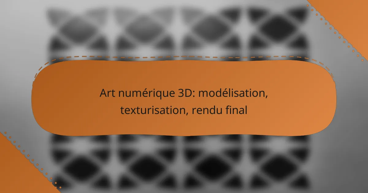 L’art numérique 3D combine la modélisation, la texturisation et le rendu final pour créer des œuvres visuellement captivantes en trois dimensions. Ce processus commence par la création d’une représentation numérique d’un objet, suivie de l’application de textures variées qui enrichissent l’apparence du modèle avant d’atteindre le rendu final, essentiel pour donner vie aux concepts dans des environnements virtuels.