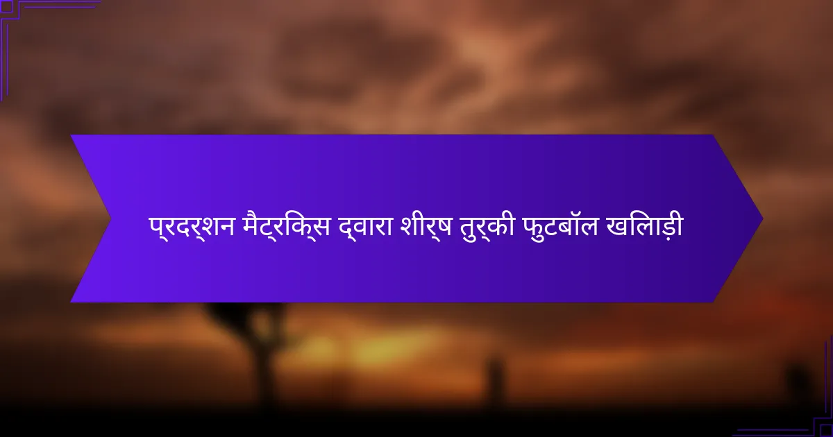 शीर्ष तुर्की फुटबॉल खिलाड़ियों की पहचान विभिन्न प्रदर्शन मेट्रिक्स के माध्यम से की जाती है, जिसमें गोल, सहायता, और उनकी टीमों में समग्र योगदान शामिल हैं। ये मेट्रिक्स घरेलू लीगों और अंतरराष्ट्रीय प्रतियोगिताओं में खिलाड़ियों की प्रभावशीलता का मूल्यांकन करने में मदद करते हैं।